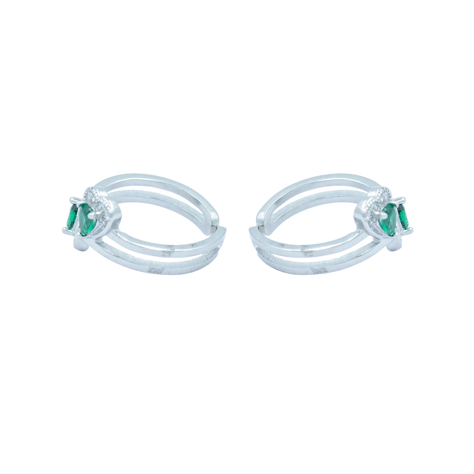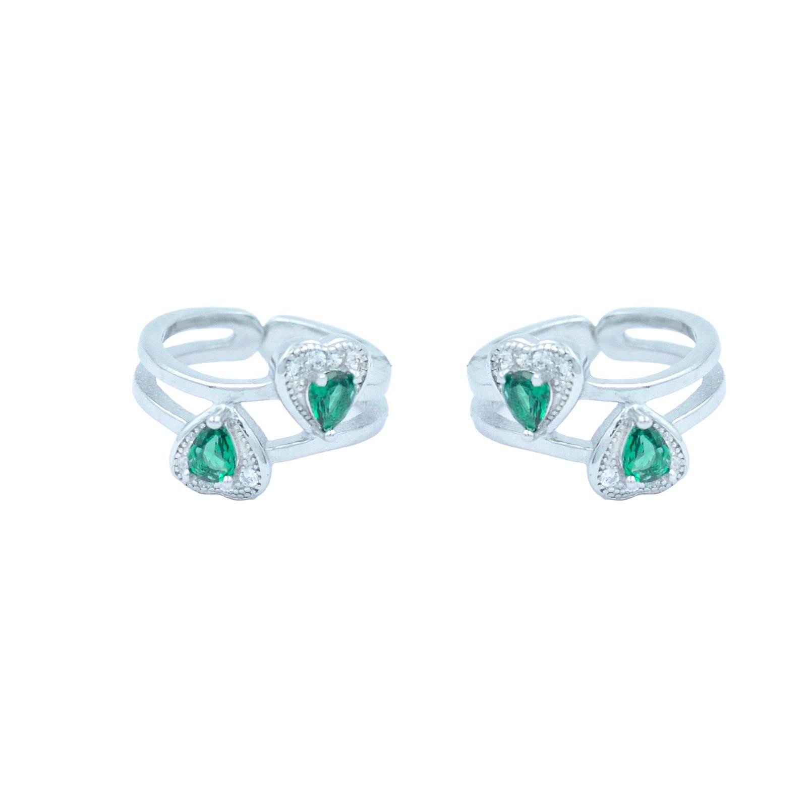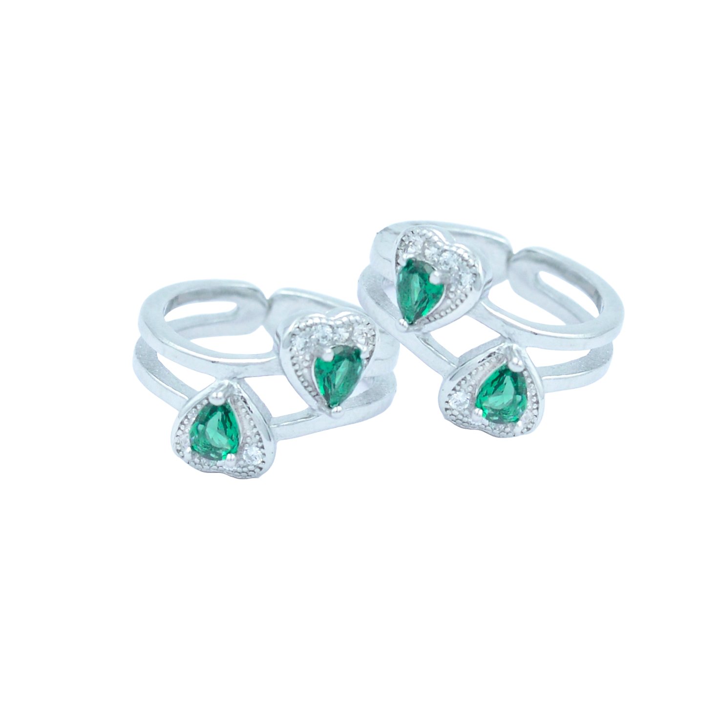 Celebrate love and freshness in each step with these sterling silver toe rings, designed with twin green heart-shaped stones surrounded by shimmering CZ halos. The elegant split-band design adds comfort and a modern touch, while the color evokes renewal, harmony, and heartfelt emotion. Whether you’re dressing up for a special day or adding a romantic sparkle to your look, these rings radiate charm from the ground up.