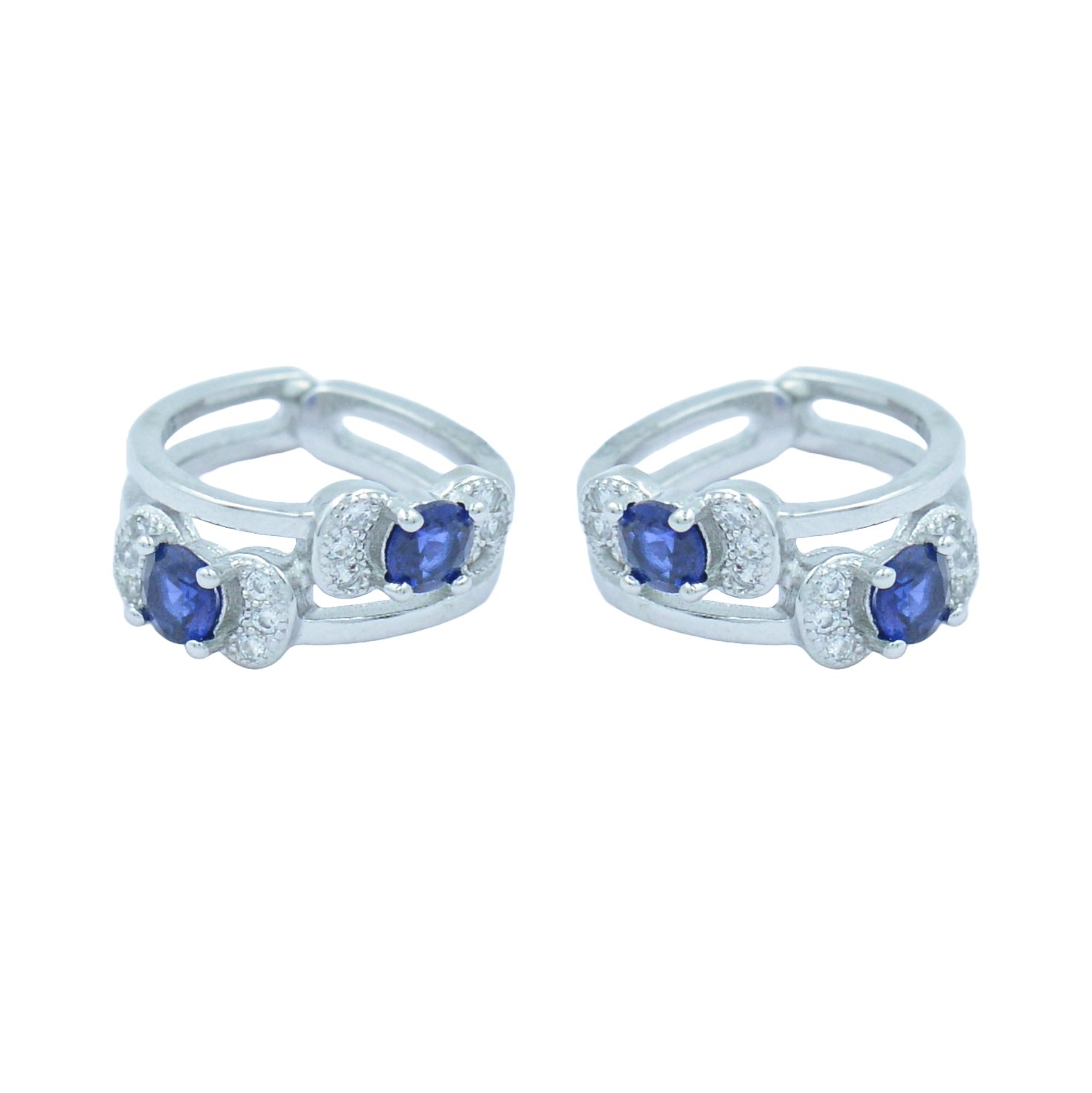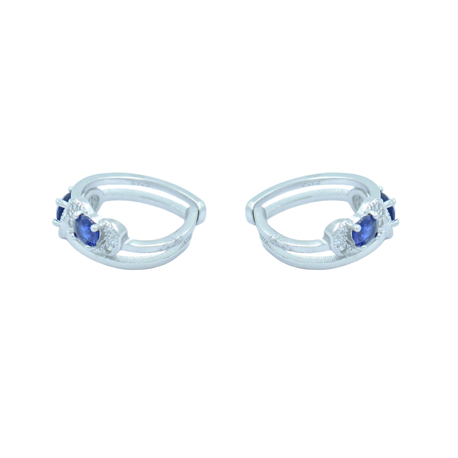 These sterling silver toe rings blend classical beauty with contemporary comfort. Each ring features a sapphire-hued CZ center stone hugged by smaller white stones, all set in a polished split-band design for a balanced look. Whether adorning your toes for a special occasion or elevating everyday style, these rings offer a delicate touch of sparkle and sophistication.