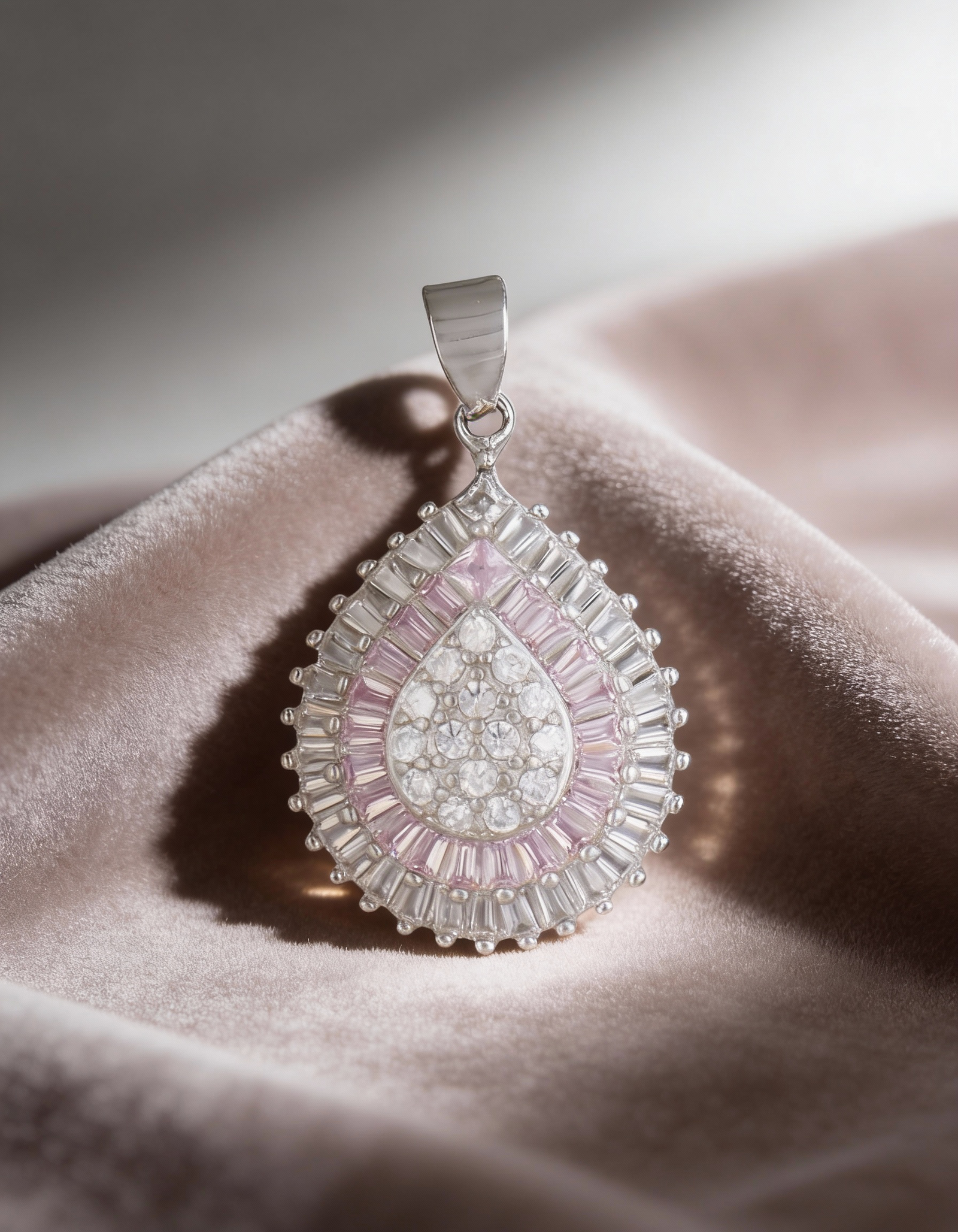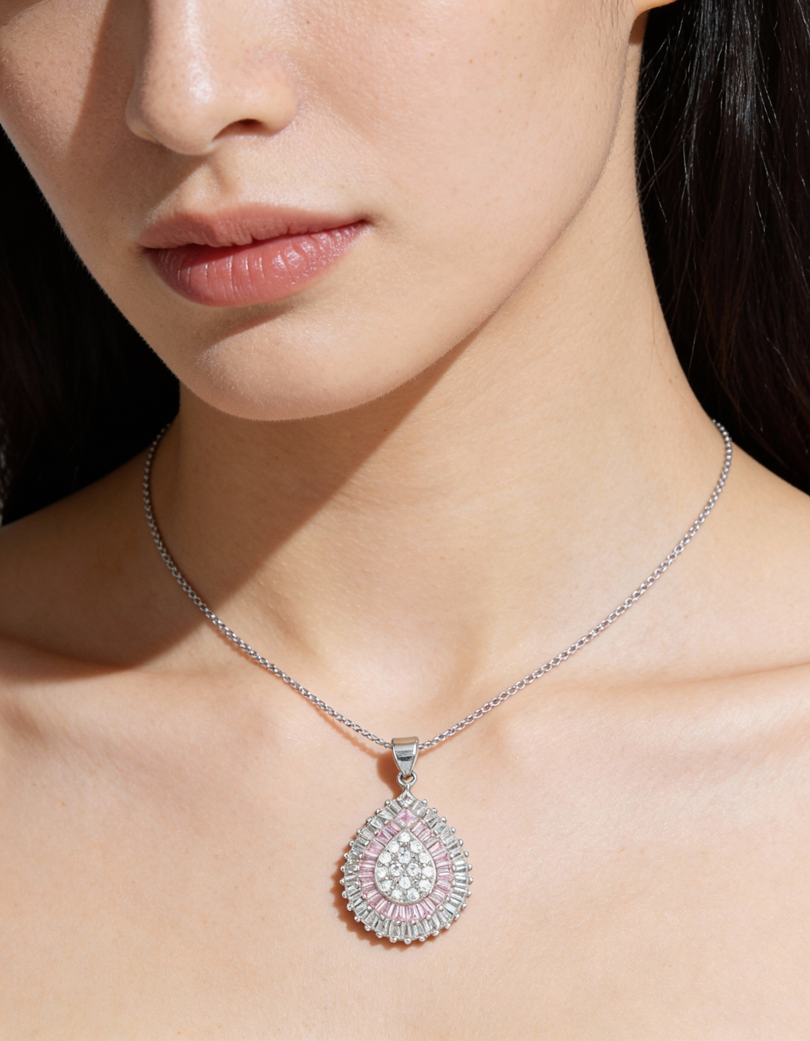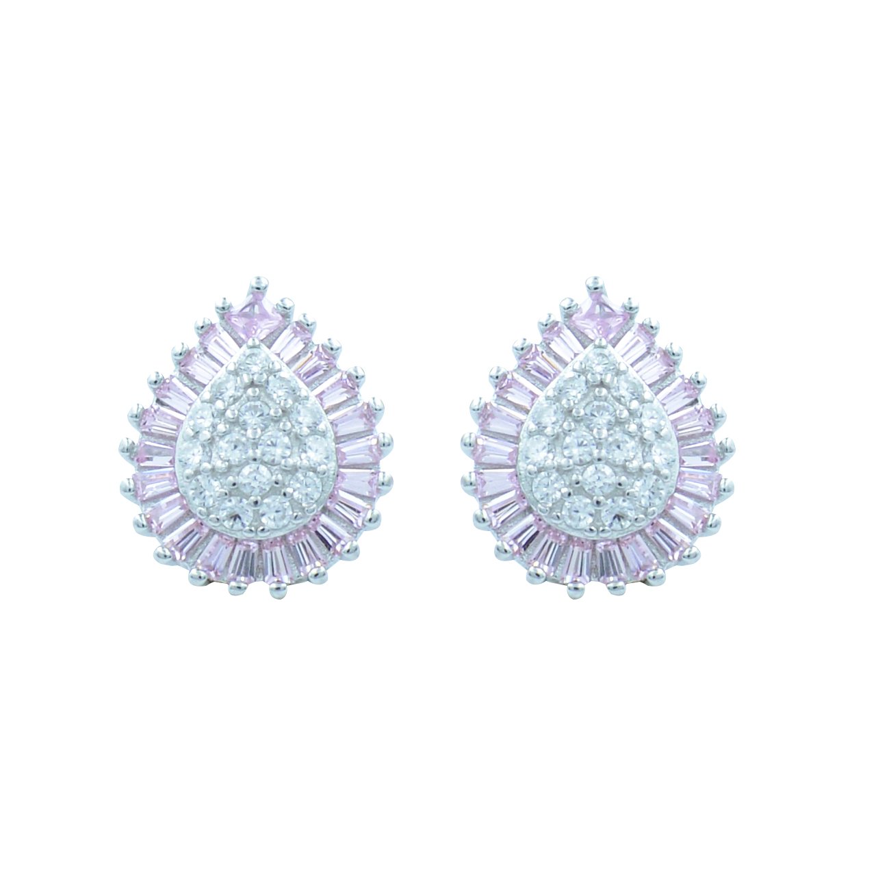 With its refined design and gentle color palette, this sterling silver jewellery set features a teardrop pendant and earrings adorned with a sparkling cluster of white stones, framed by a delicate row of lavender baguettes. Thoughtfully crafted for those who express emotion through adornment, this set adds a touch of radiant charm to both celebratory and everyday moments.