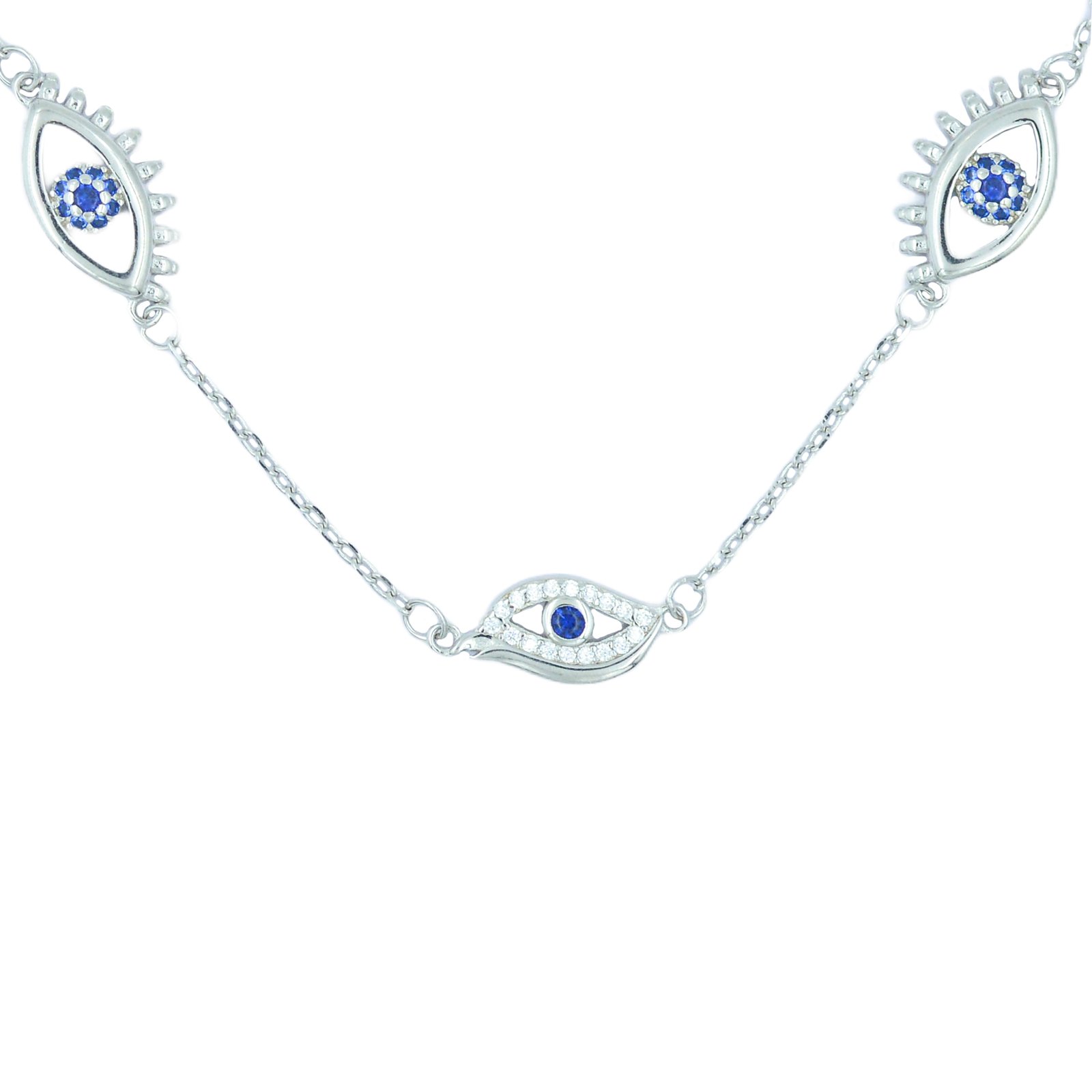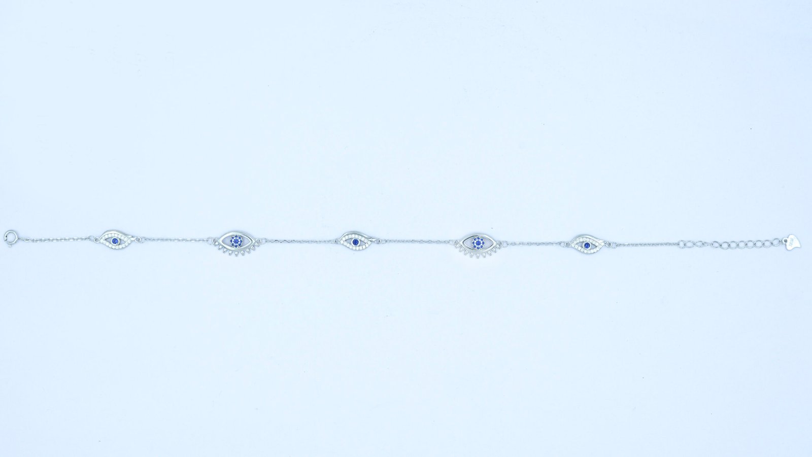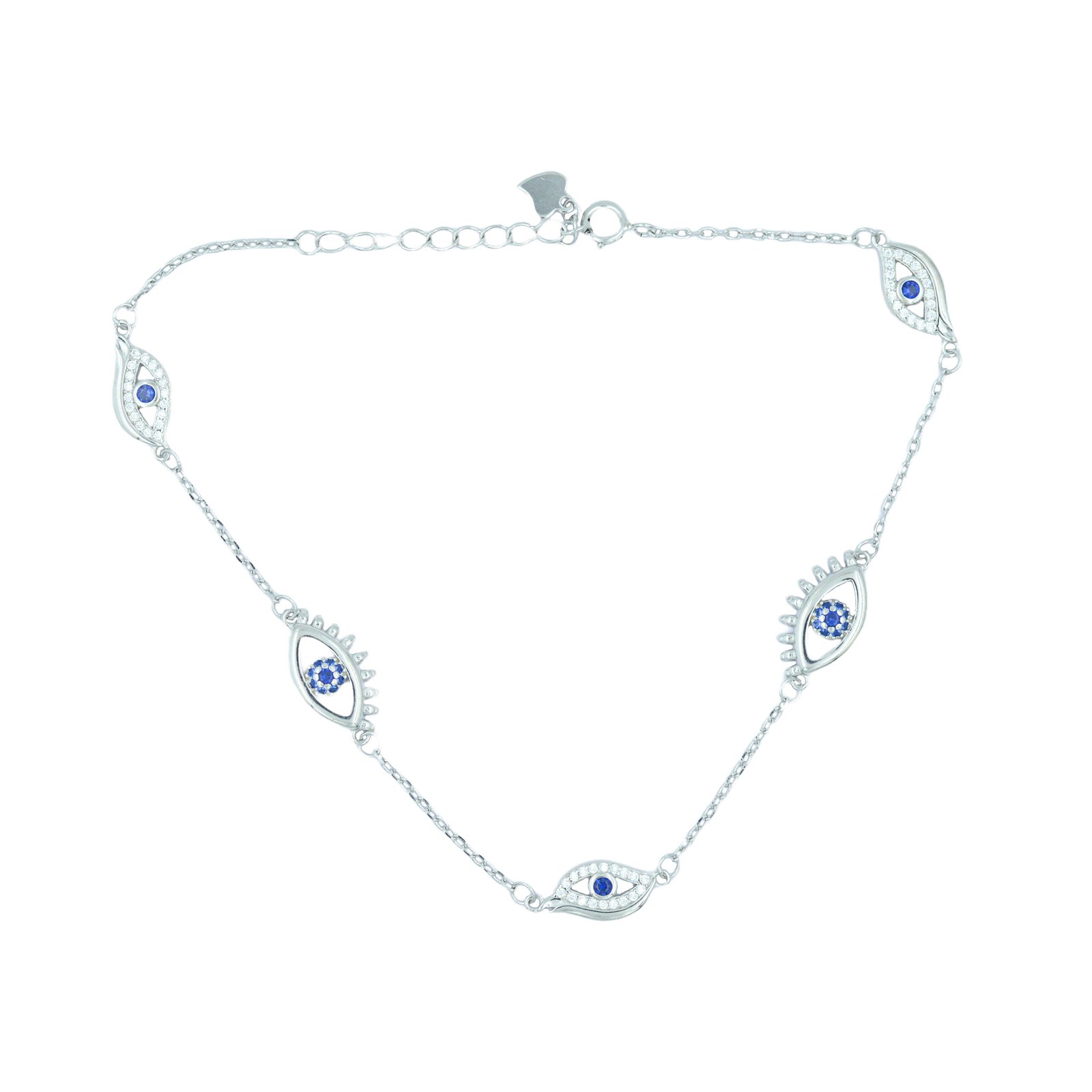 Ward off negativity in style with this finely crafted evil eye anklet in 925 sterling silver. Adorned with precision-set cubic zirconia in royal blue and white, it blends symbolism and elegance—making it an ideal good-luck charm for modern wearers.
